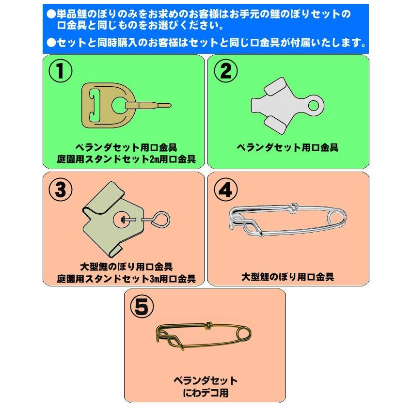単品こいのぼりのみをお求めのお客様は、お手元の鯉のぼりセットの口金具と同じものをお選びください。