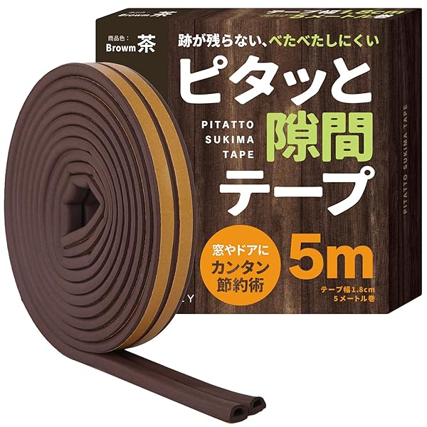 すきまのDIY エチレンプロピレンジエンモノマーゴム 【ドアの隙間 防音に】ピタッと隙間テープ すきま風防止 ドア 窓 すきまパッド シールテープ エアコン効率アップ (茶)