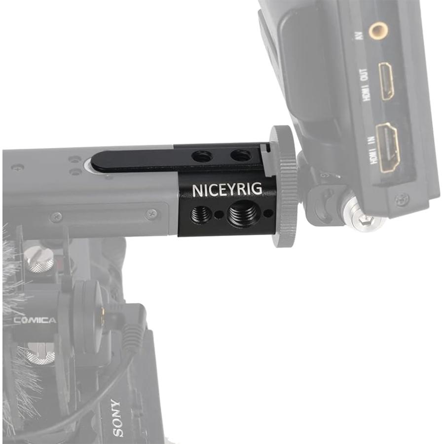 延長リグには、コールドシュー、複数の1/4 -20と位置づけ穴があるため、多様の撮影アクセサリが取り付けられます。