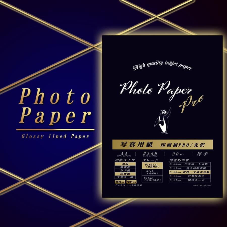 G&G 写真用紙 光沢印画紙 PRO A4 20枚入 厚手 ハイグレード 顔料 染料 フォト用紙 メール便