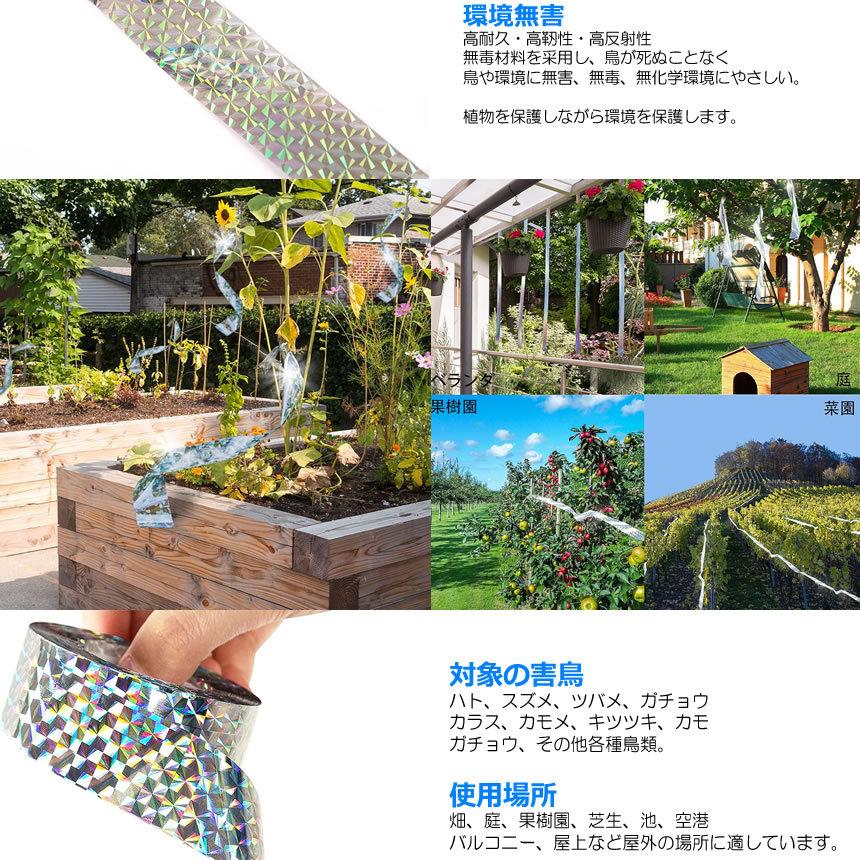 長期間に太陽の光を反射させ、害鳥を遠ざけます。
