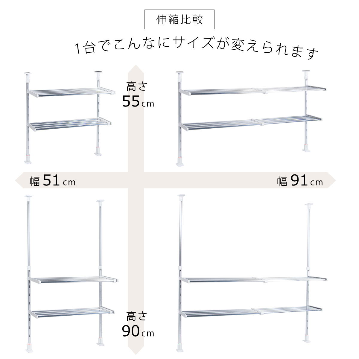 サイズ/本体:約幅51.7〜91.7×奥行25.8×高さ55.4〜90cm