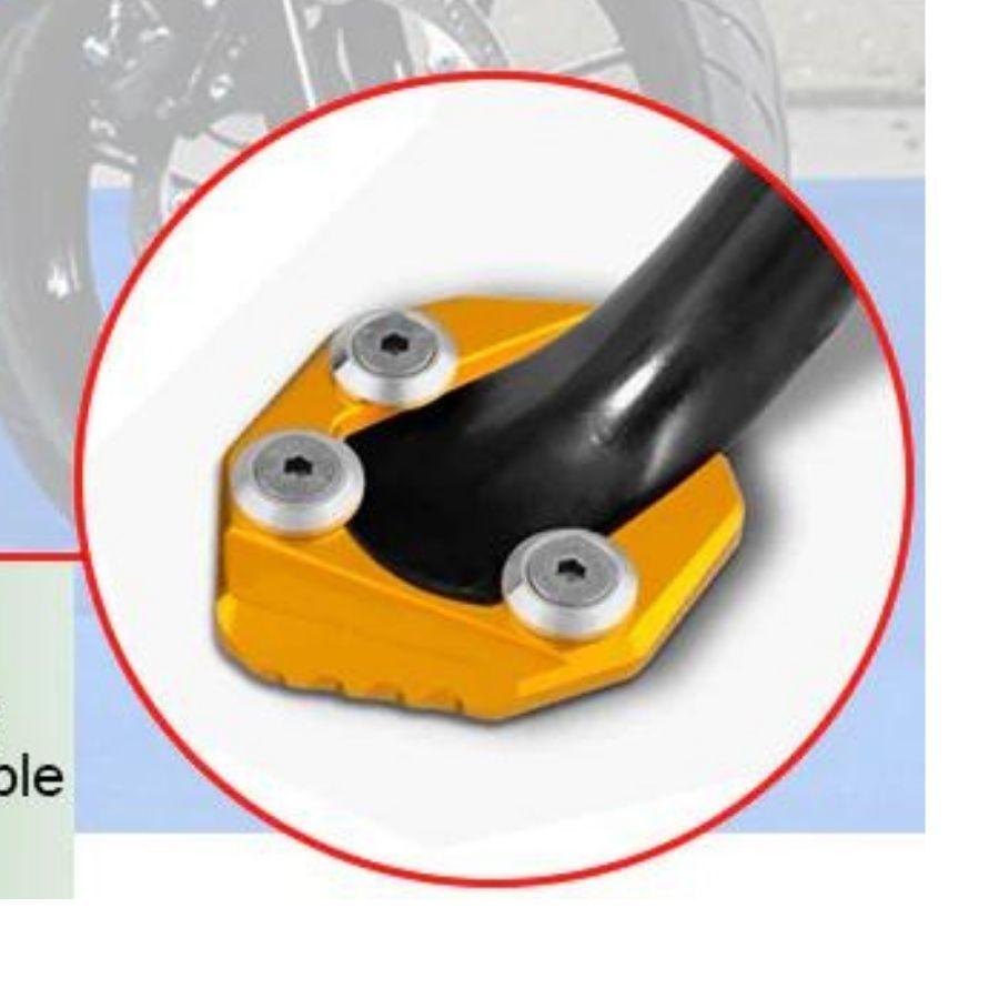 GSX-R125とS125用のサイドスタンドエクステンションプレートです。材質:アルミ純正スタンドより接地面がワイドになるため、柔らかい地面にもスタンドを立てやすくなります。