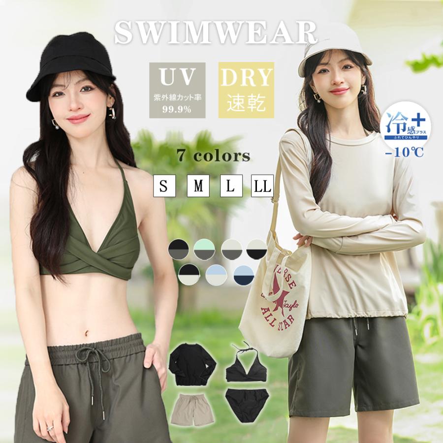 水着 レディース 体型カバー ママ 水着 タンキニ 長袖ラッシュガード 大きいサイズ ショートパンツ 4点上下セット 20代 30代 40代 50代 UPF50+ 日焼け防止