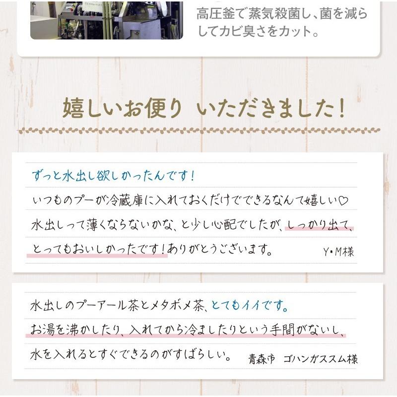 ■水出しプーアール茶1リットル用30個入サイズ:1リットル用30個入内容量:1袋300g(10gティーバッグ×30個入)賞味期限:製造日より24か月主な原材料(原産国):プーアール茶(中国)、プーアール茶エキス(国産)製造加工地:日本(静岡県)※食品・飲料など賞味期限掲載のある商品について賞味期限は製造日からの目安の期間となります。製造ロットの都合により、WEBサイト表示の賞味期限とお届けの商品の賞味期限に違いが生じる場合がございます。