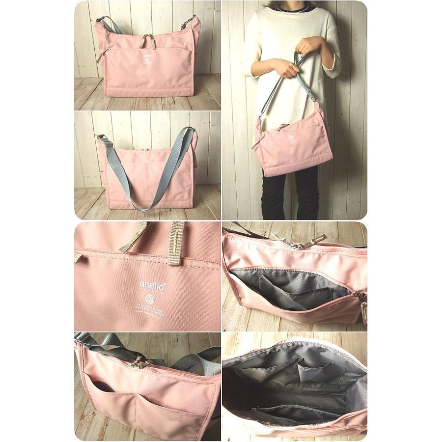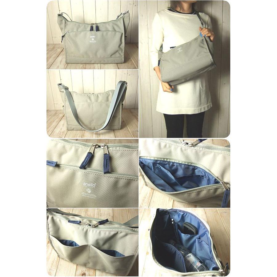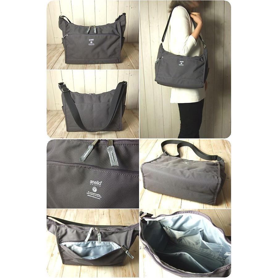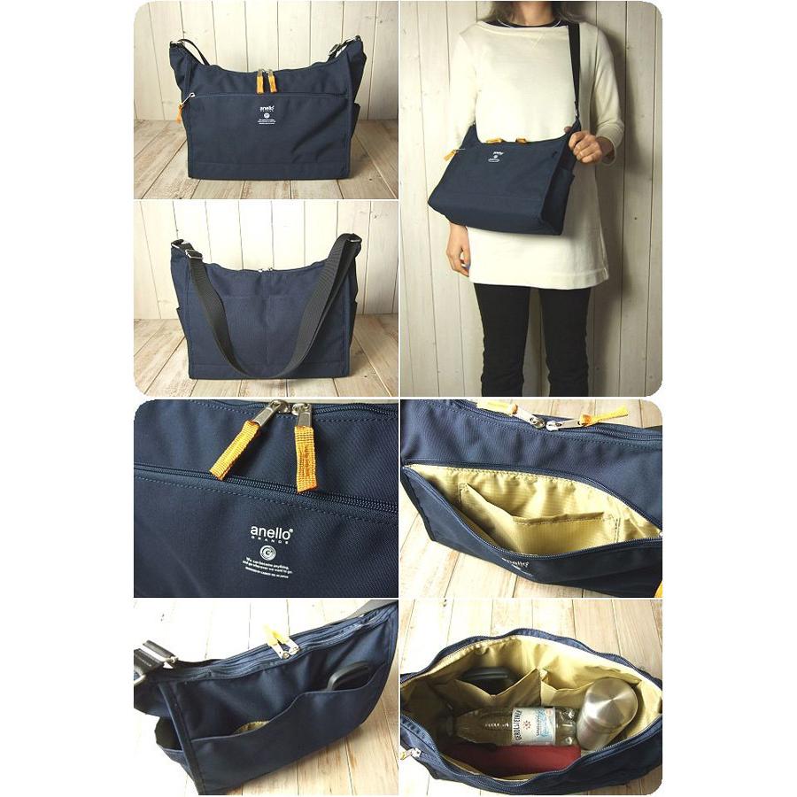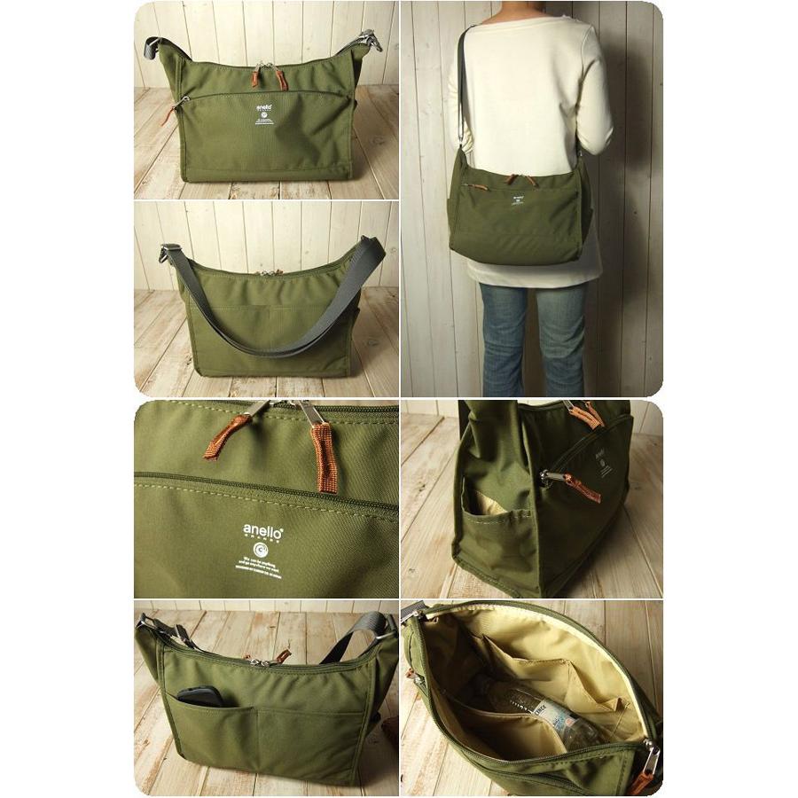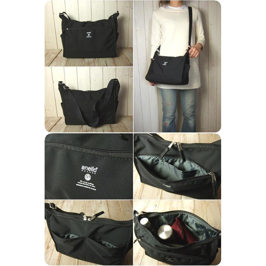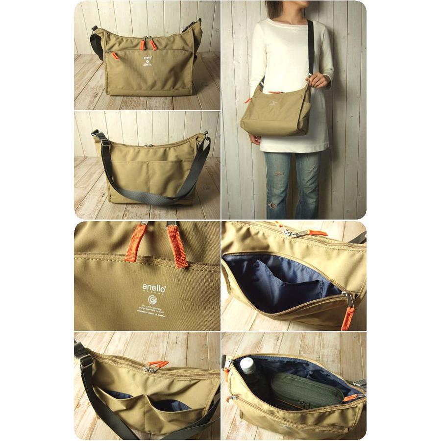・強撥水加工を施した軽量のスラブポリエステルを使用したアネロ【anello】のショルダーバッグです。開閉はダブルファスナーで、全面にファスナーポケットが1つ(内側にポケットが1つあり)、両サイドにオープンポケットが1つずつ、背面にオープンポケットが2つ、内側にオープンポケットが2つとペンポケットが1つ、ファスナーポケットも1つ付いています。ショルダーストラップは幅3.2センチで長さは約65〜120センチの間で調節が可能です。