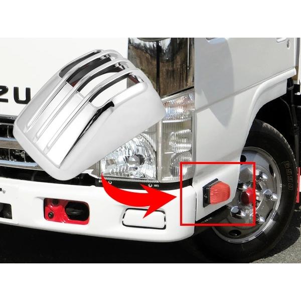 適合車種07エルフ ローキャブ 新灯火器規制対応ランプ装着車平成22年4月〜※ハイキャブ / ワイドキャブ 適合不可商品説明材質:ABS製取り付けは付属の両面テープで貼り付けるだけの簡単取り付けになります。(※走行中脱落防止の為、取り付け前に必ずパーツクリーナー等で両面テープ取り付け面の脱脂作業を行ってください。)注意事項商品は新品・未使用品になりますが、社外品の為、多少の小傷等がある場合が御座います。取扱説明書は付属しておりません。