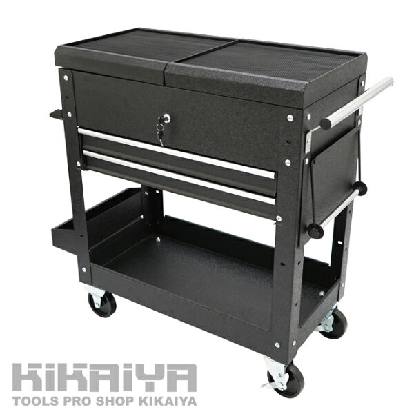 KIKAIYA ツールワゴン ツールカート 作業台 スライドトップ 天板開閉式 リンクル塗装 ブラック ドライバー挿し スプレ…