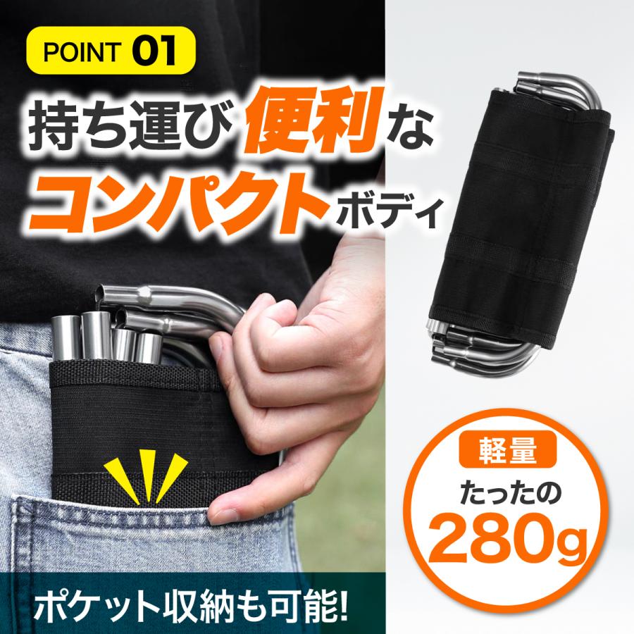 280gの軽量さと収納ケースの付属により、持ち運びも簡単です。重さや場所を気にせず、どこへでも手軽に持参することができます。