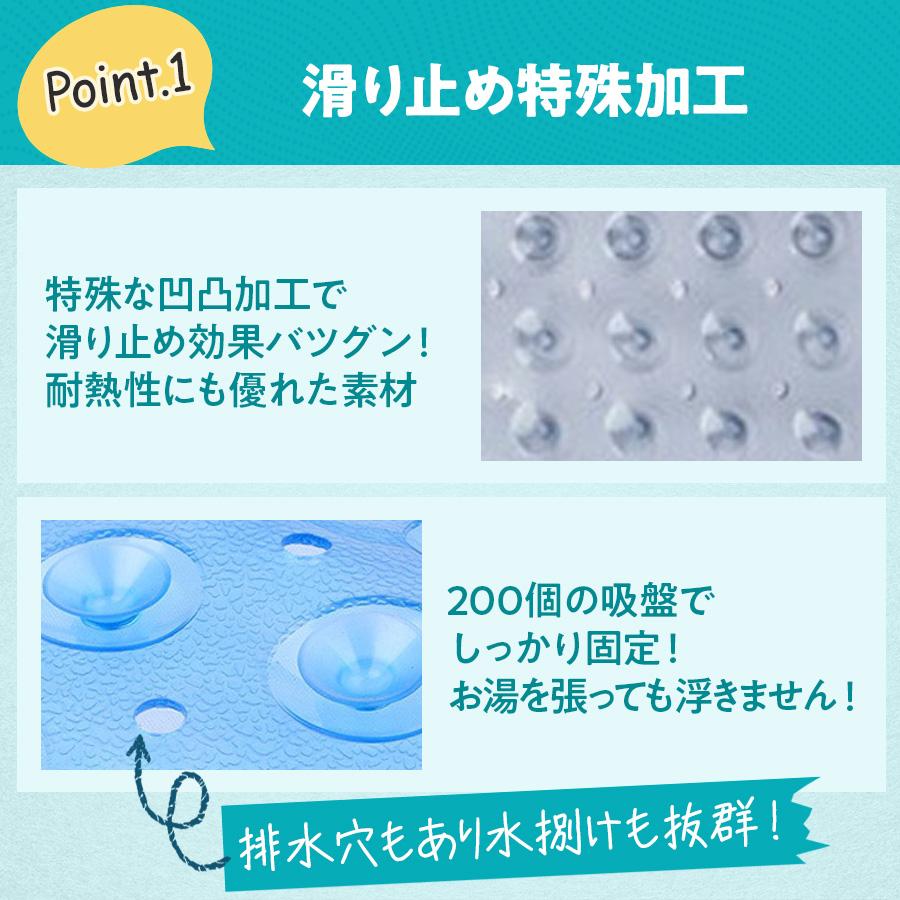 ・ 特徴:200個吸盤、ズレ防止、速乾性