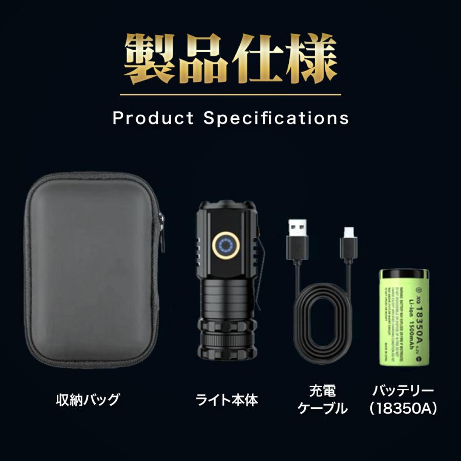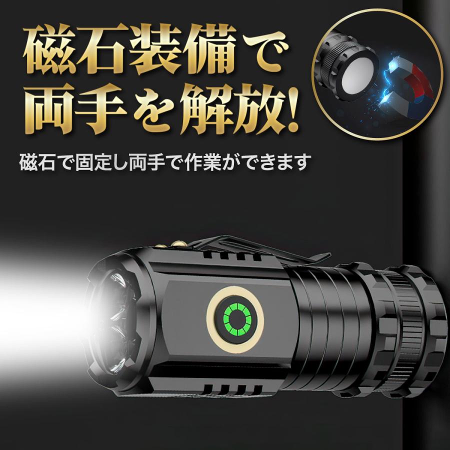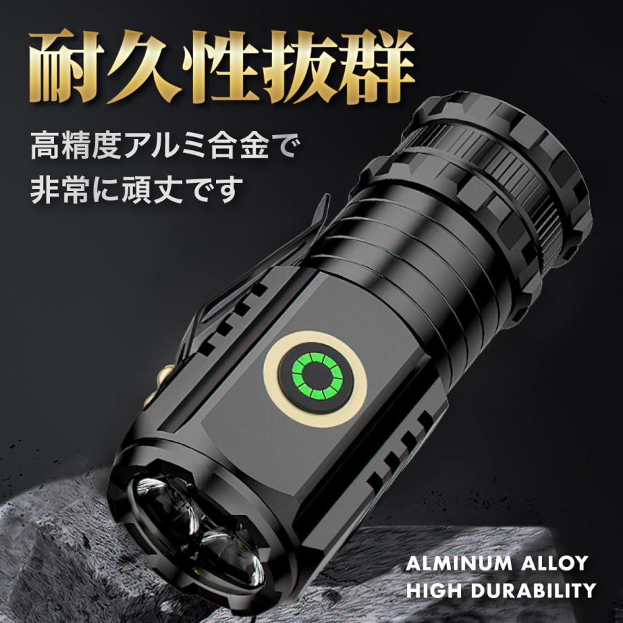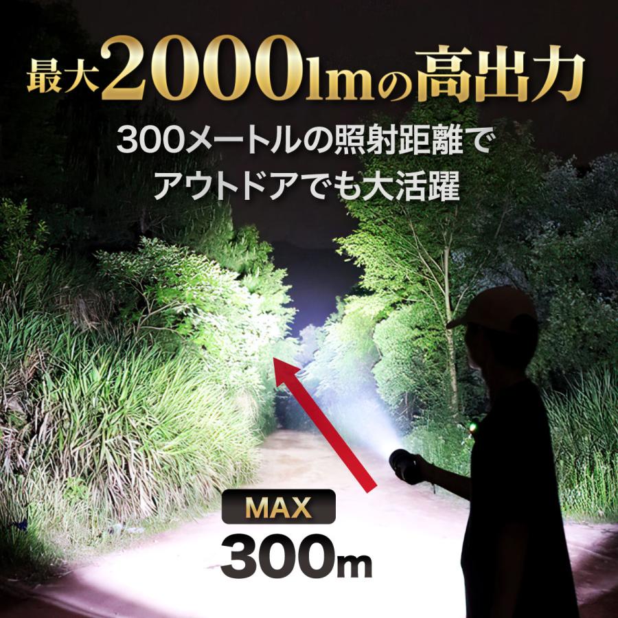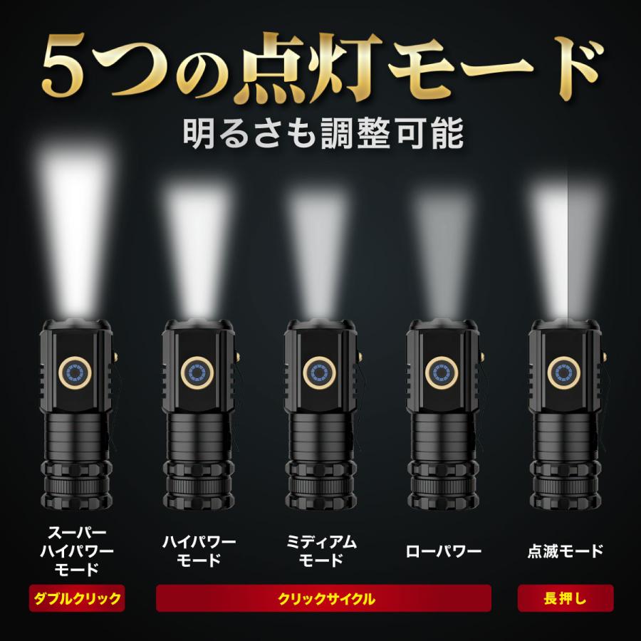 明るさ2000ルーメンの高輝度で、ハイパワー・ミディアム・ロー・スーパーハイパワー・点滅と5つの照明モードを備えており、犬の散歩、緊急時など様々な場面に役立ちます。