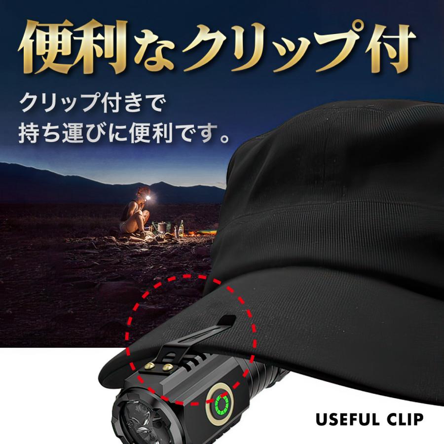 また、実用的なクリップが付いており、衣服や帽子のつばに固定でき、アウトドアや作業などでも簡単に使用できます。