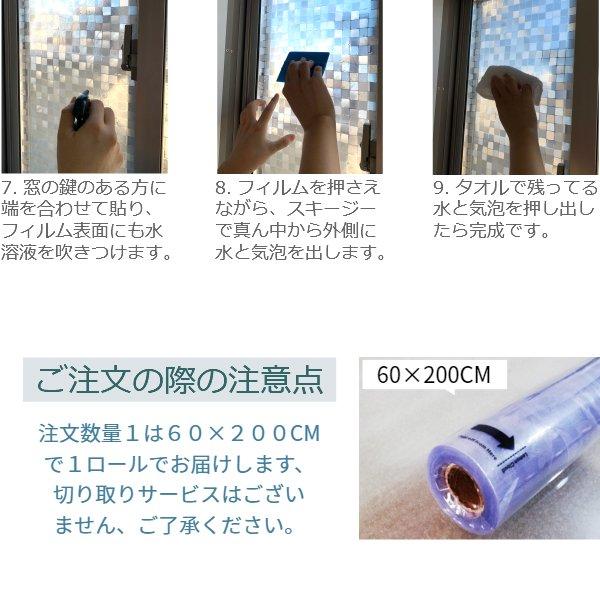 商 品 名:窓ガラスフィルム<BR>商品番号:WS-MF60<BR>材 質:ポリ塩化ビニル<BR>サ イ ズ:60cm×200cm<BR>数 量:1枚<BR>注意事項: 1.凹凸表面のガラスでの使用を避けてください。2.画面上の色と商品の色は若干異なる場合がございます、ご了承くださいませ。<BR>貼る場所:窓ガラス(店舗、オフィスリビング、寝室、キッチン、浴室、トイレなど)<BR>