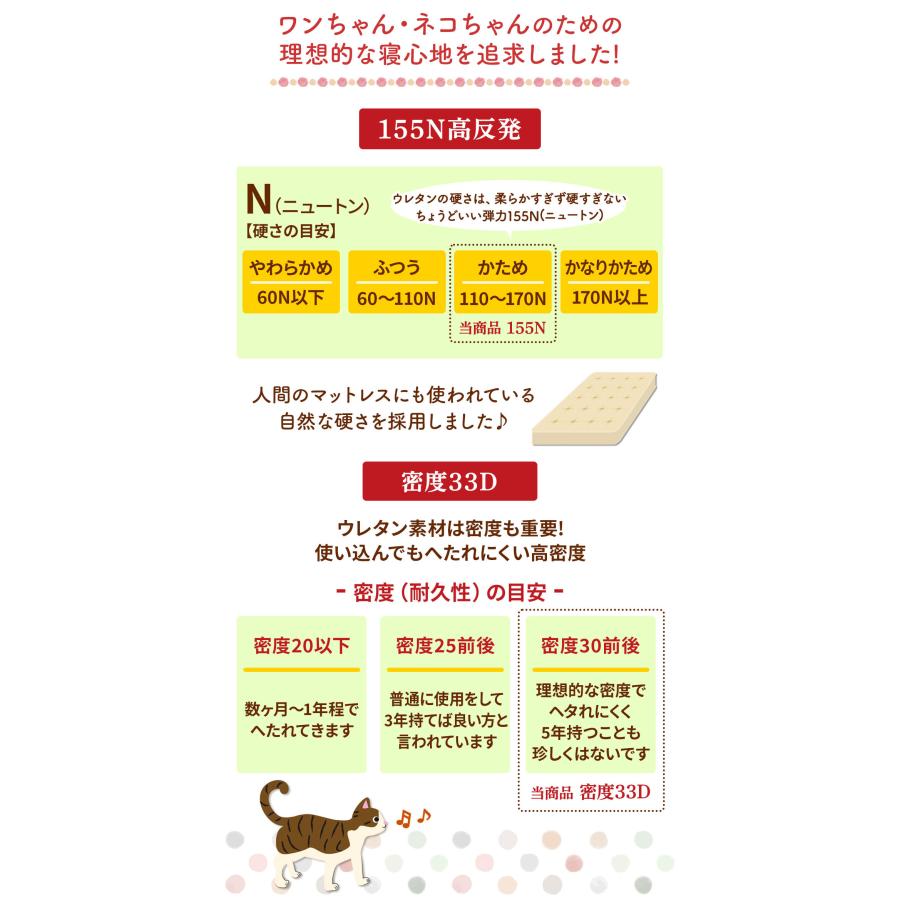 【中身の素材は33Dウレタンを採用】人間のマットレスにも採用されるほどのしっかりとしたウレタンを利用しています。品質に妥協しない製品を創り出すことで、今までにない高品質なペットベッドでペットライフをより良いものにしていただきたいと思っています。