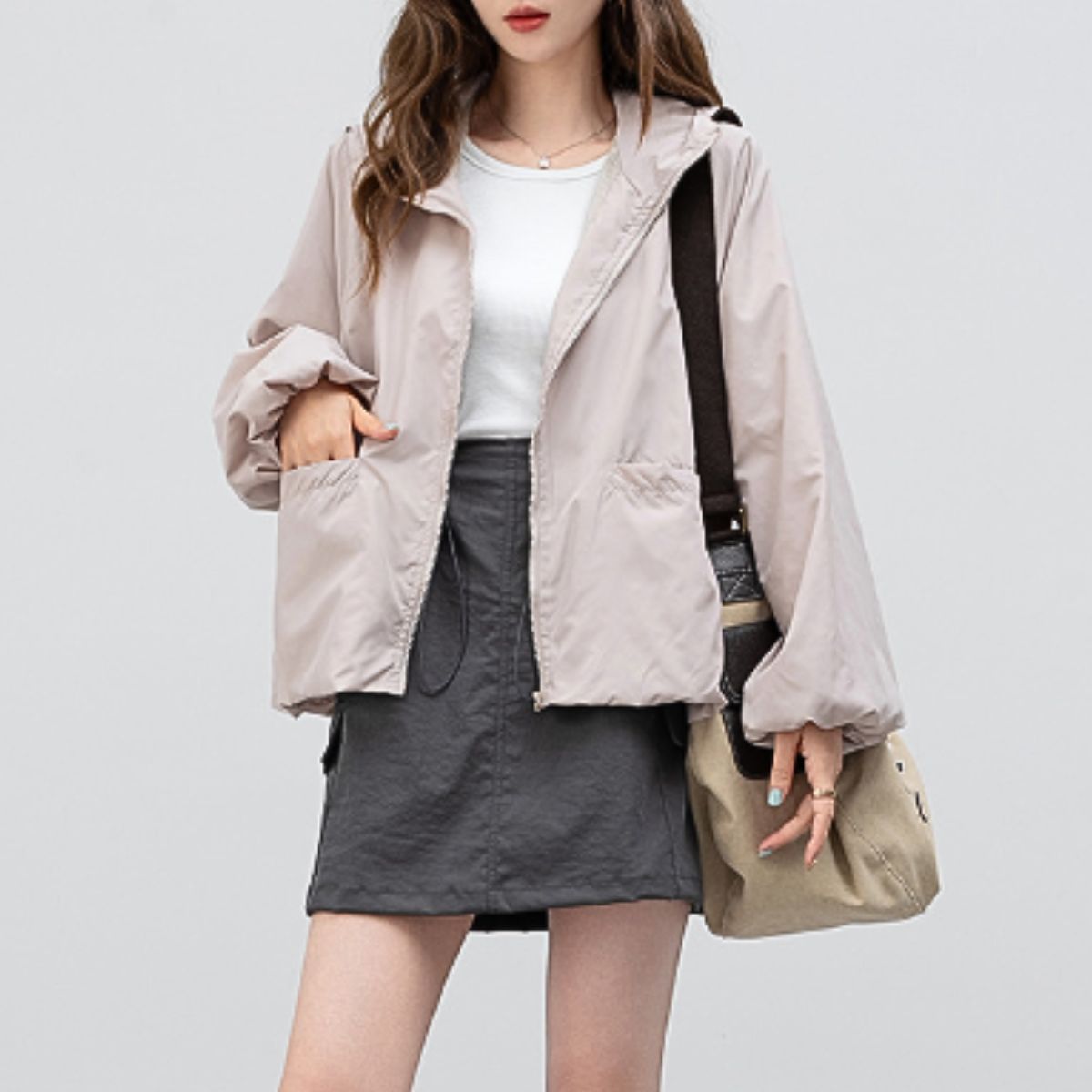 -シンプルで大人な色味がかわいい、ちょこっと羽織りやすいパーカー