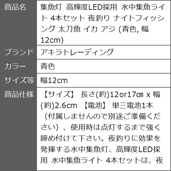 夜釣りに効果を発揮する水中集魚灯、高輝度LED採用 水中集魚ライト 4本セットは、夜釣りやナイトフィッシングに最適なアイテムです。