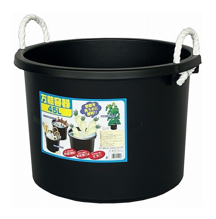 たらい 万能容器 45L ブラック | 日本製 バケツ 大容量 水槽 黒 45リットル アウトドア 家庭菜園 用具入れ ロープ付き 金魚 メダカ 飼育 ビオトープ 持ち運び プラスチック マルチ タライ