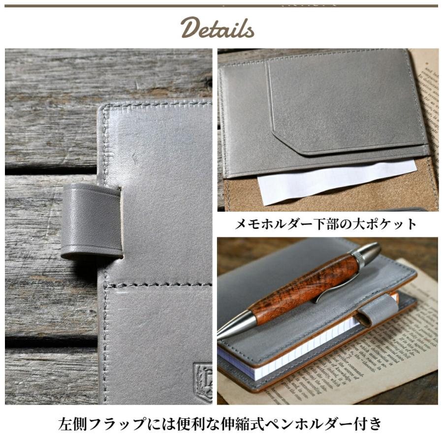 右側にはメモ固定ホルダーと下部に大ポケットが付きます