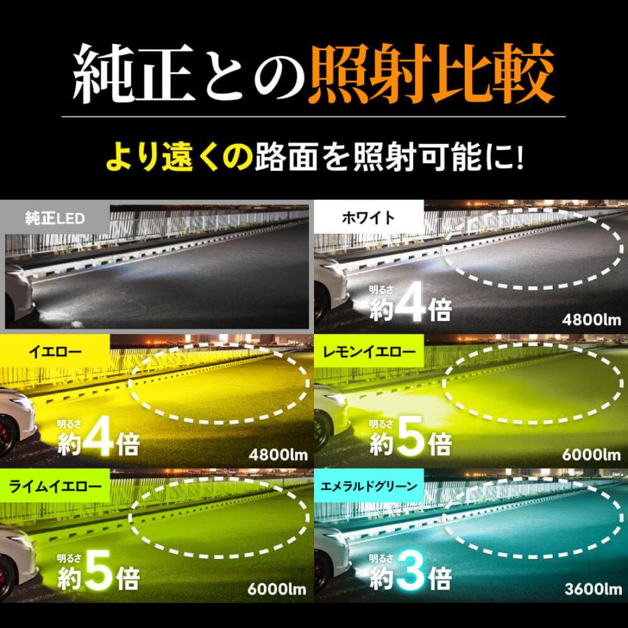 【明るさ】4800lm(ホワイト) / 4800lm(イエロー) / 6000lm(レモンイエロー) / 6000lm(ライムイエロー) / 3600lm(エメラルドグリーン)