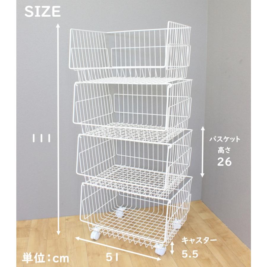 材質:スチール 色:白色/茶色 粉体塗装 サイズ:幅51*奥行40*高さ111cm バスケットの高さ:26cm キャスター:直径4cm、2ヶストッパー無し、2ヶストッパー付 重量:9.8kg耐荷重:10kg/段