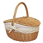 [メルカド かご収納雑貨の店]フタ付き ウィッカー ピクニック バスケット (レース)