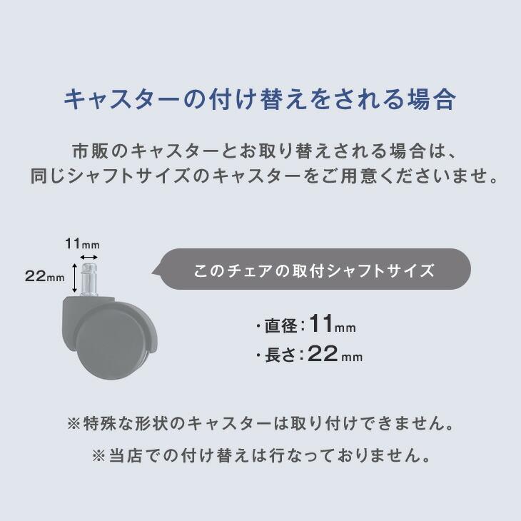 ※キャスターの差し込み部分の規格は長さ22mm、直径11mmです。市販のキャスターにお取替えの際はご参考ください。
