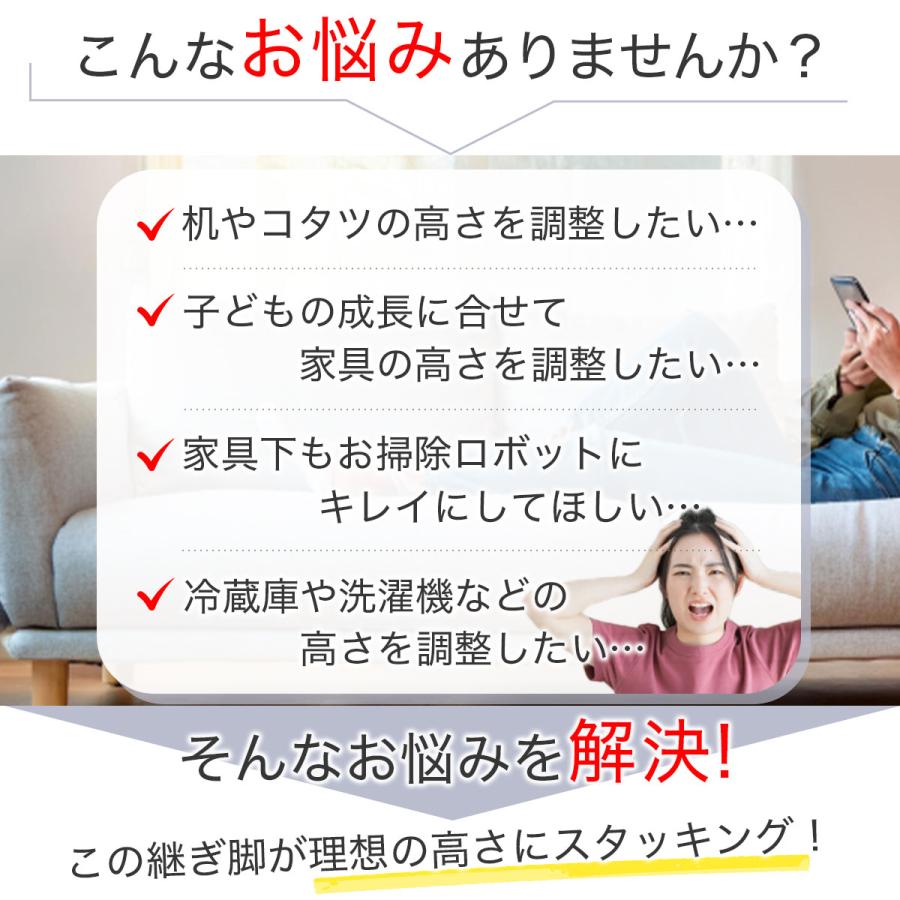 ・継ぎ脚 2段 4個セットは、机やベッド、ソファーなどの家具の高さを自由に調整できる便利なアイテムです。