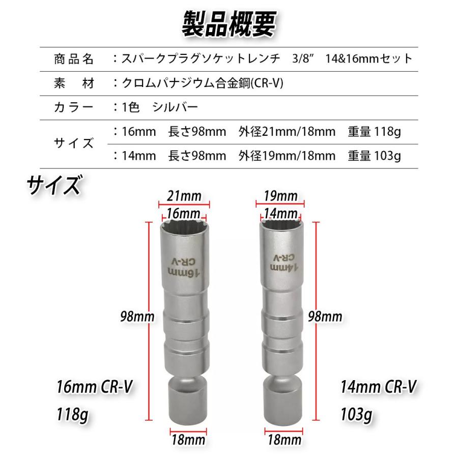 スパークプラグソケットレンチ(14mm & 16mmの2個セット)