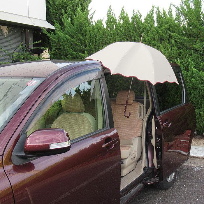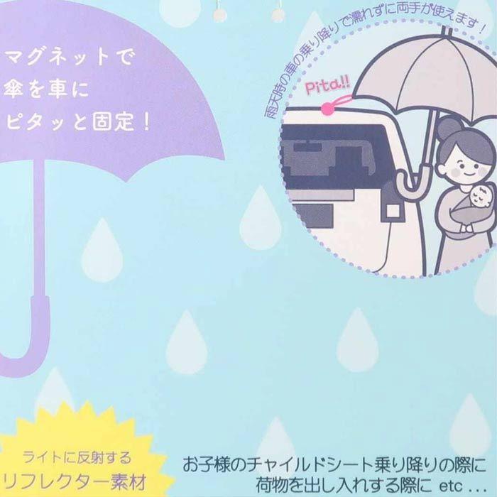マグネット入りのマスコットが車の屋根にくっついて傘を固定。