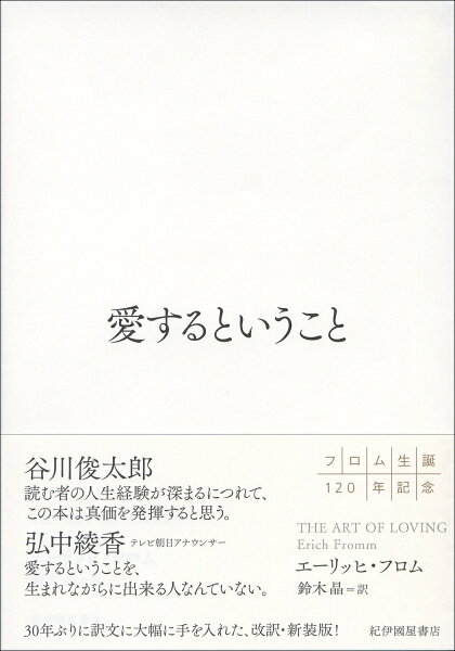 【特典】愛するということ(ギフト用限定帯カバー)はこちら→愛する技術とは? 読み継がれて60年ー 世界的ベストセラー30年ぶりの改訳・新装版!・各界の方々からのメッセージ池谷裕二(脳研究者・東京大学薬学部教授)愛について哲学し、愛の技術と理論を学び、そして、愛する練習を繰り返す。そんな本はほかにはありません。ときに手厳しい言葉も綴られますが、著者が私たち読者のことを愛してくれている証拠です。小谷野 敦(比較文学者・作家)間違えてはいけない。これは「愛されるということ」ではない。この本をいくらよく読んで何かを実行しても、好きな相手から好かれるようにはならない。そういう勘違いさえしなければ、読んでもよい。姜 尚中(政治学者)愛に飢えながら、愛を語りえないわたしたちの不幸。それは、愛が歪んだナルシシズムと利己心の別名になっているからだ。愛するということは、自己への信頼と他人の可能性への信頼にもとづく最も人間らしい技術にほかならないことを知ったとき、愛は輝きを増し、そしてわたしの希望となった。本書によってわたしは救われたのだ。菊地成孔(音楽家・文筆家)「愛ってこんなに面倒くさいものなの?」と思うでしょうけれども、こんなに面倒くさいんです。あらゆる愛の実践が、歌の歌詞だけになってしまった現代に残された、今となっては喰えないぐらいにキツイ本です。「ずっとそばにいるよ」とか「声聞けないと死にそうだよ」とかいった言葉に本気でグッと来るような人は、読まない方が良いかもしれません。岸見一郎(哲学者)高校生の時に初めて知ったフロムの著作の中で、もっとも大きな影響を受けたのが『愛するということ』である。「愛は技術なのか」。にわかには答えを出せないこの問いをフロムと共に粘り強く考え抜いてほしい。武田砂鉄(ライター)愛というのはね……なんてアナタに語り始める人がいたとしたら(しかも偉そうに!)、この本のことを思い出しましょう。そう簡単に語れるものじゃないってことを、思い出すことができます。谷川俊太郎『愛するということ』を、若いころは観念的にしか読んでいなかった。再読してフロムの言葉が大変具体的に胸に響いてくるのに驚いた。読む者の人生経験が深まるにつれて、この本は真価を発揮すると思う。出口治明(APU 立命館アジア太平洋大学学長)愛は幸福に生きるための技術である。学生時代に初めて本書を手にした時の感動が蘇る。愛とは信念の行為であり愛の技術を習練するには知力と努力が必要だ。ステイホームの今こそ、孤独を癒す愛の技術を学んで欲しい。平野啓一郎(小説家)確かに、古びてしまった点もある。しかし、それを選り分ける批評的な手作業は、却って深く、読者に、現代の愛を考えさせる。「愛の技術」を説く本ではあるが、文明論でもあり、私たちの困難を理解しつつ、鼓舞してくれる。弘中綾香(テレビ朝日アナウンサー)寂しい独り者が読むものだと思わないでほしい。家族がいる人や、パートナーと上手くいっている人であっても、本当に自分はその人のことを愛せているか、この本を読んだ後に自問自答してほしい。愛するということを、生まれながらに出来る人なんていないのだから。ブレイディみかこ(ライター・コラムニスト)本書の英題は『The Art of Loving』。ARTは芸術のほか、技術、能力などを意味する。この本は「落ちる」感情ではなく、「踏み込む」意志から始まる愛のARTを語っている。その追求こそ、これからの人間と社会の進むべき道だろう。文学YouTuberベル「愛なんて、学校で習っていないからわからない!」と冗談をかます私に本気でぶつかってきた一冊だった。読んだ多くの人はこう思うだろう。「自分はまだ本当の愛を知らなかった」と。ミッツ・マングローブ(歌手・タレント)私のように主体性や自己肯定力の低い者にとって、愛とは、とめどない勘違いと妥協と失望の連続であり、それらを乗り越える気力や相手への情があるかないかを自分に問いただす作業だった。愛というこの世でもっとも面倒くさいアクトを習練し、こなし続けることで、これまで見えなかった自分を知れるかもしれない。森 まゆみ(作家)初読の学生時代、私はカップルの片われで、「愛されること」ばかり考えていた。結婚、出産、育児、離婚、市民運動、更年期障害、老いの自覚を経て再読し、この本が何百倍も広く深い、生きる意味を照らす鏡であると思えてきた。