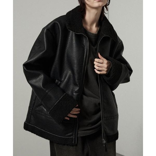 ムートンジャケット ムートンコート 「Alfred Alex」ヴィンテージ加工 B-3 ハイネック ダブルジップ ボアジャケット メンズ レディース