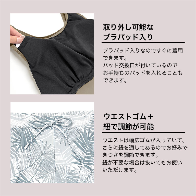 ●中のタンクトップは取り外せるブラパッド付き。シンプルデザインなのでお手持ちの水着とコーディネートしても◎