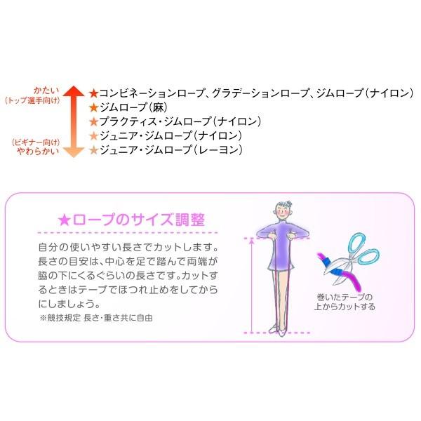 ●選手を目指すジュニアのためのやや硬めのロープ。●シニアへのステップアップにおすすめです。●鮮やかで美しい発色●硬さは、ジムロープ(ナイロン)とジュニア・ジムロープ(ナイロン)の中間くらいです。*検定品ではありません