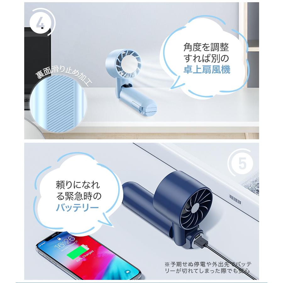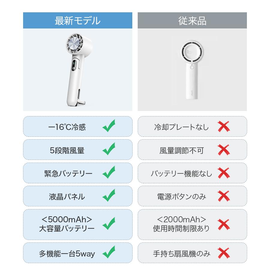 「仕様」商品名:携帯扇風機・ハンディファン (ハンディクーラー)電池容量:5000mAh定格消費電量:8W(Max)入力電圧電流:5V/1A(急速充電可)出力電圧電流:5V/1A重量:約189g「ご注意」初めての使用でファンが回らない場合、扇風機の部分を軽く叩いてください。それでも改善しない場合、店舗へご連絡くださいませ。一部新入荷の製品にはストラップの穴がありません。お手数ではございますが、スタンドのリング部分につけてみてください。