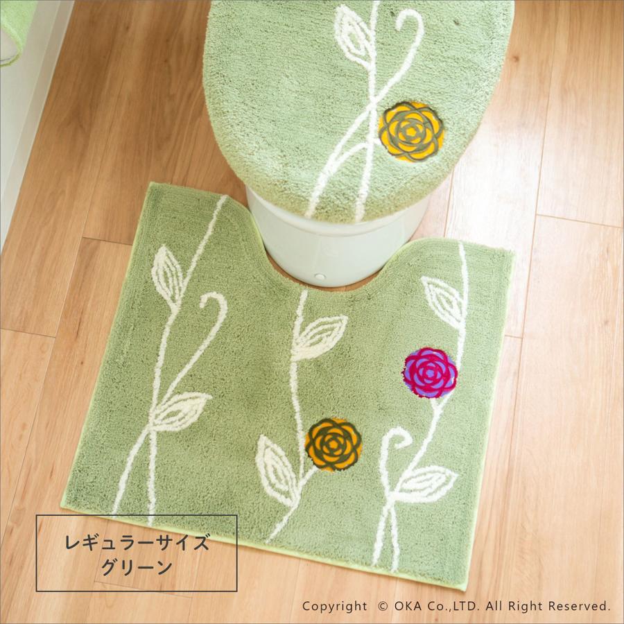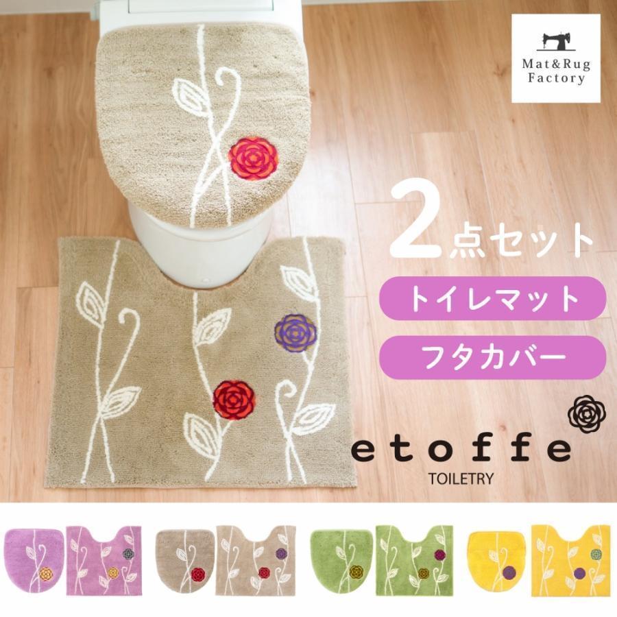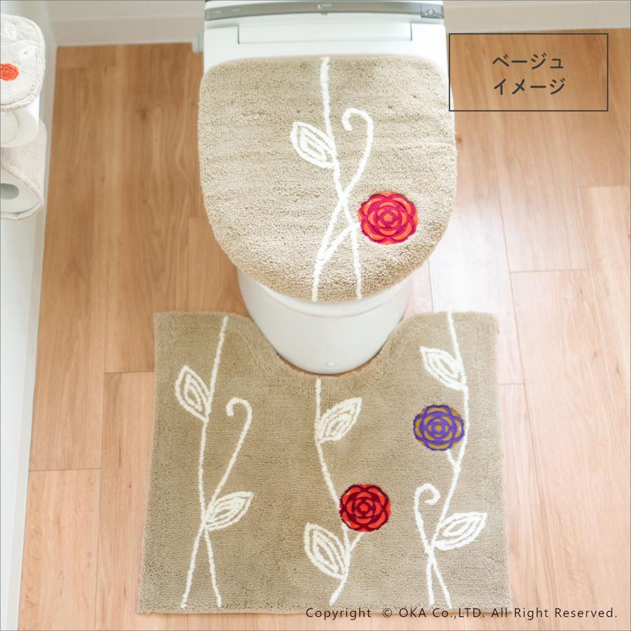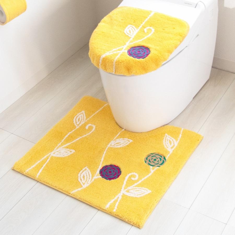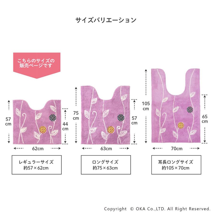 シンプルマットにデザインされたフラワーモチーフのアップリケがアクセントの北欧風 ロングのトイレマットセット 2点です。あたたかく、心地よく、自宅で過ごす時間がほんの少し、素敵になりそうなゆったりとした雰囲気のトイレマットです。