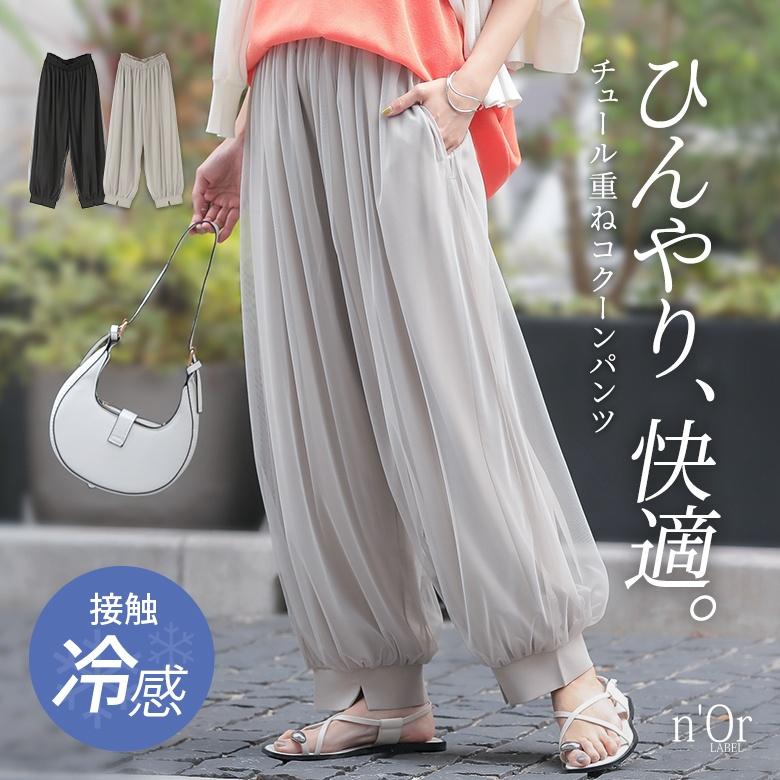 パンツ レディース ボトムス 長ズボン コクーンパンツ チュール 冷感 接触冷感 ドッキング ポンチ イージーケア 機能性 夏 【TP】 ロングパンツ サルエルパンツ アラジンパンツ n'OrLABEL ノア―ルレーベル 大人女子 大人可愛い お洒落可愛い 大人カジュアル ベーシック ニュアンス ラフ エフォートレス オフィスカジュアル 上品 きれいめ ナチュラル 10分丈 タック フリル スリット スラッシュ開き 無地 透け感 ポケット おうちで洗える 春 カジュアル レトロ シンプル キレカジ ビンテージ風 ゆったり ゆる Sサイズ Mサイズ Lサイズ LLサイズ 3Lサイズ XLサイズ 女子会 オフィス 通勤 通学 お買い物 お出掛け 旅行 リゾート レジャー アウトドア キャンプ おしゃれ お洒落 トレンド 流行 学校行事 ママ 母 母親 osharewalker オシャレウォーカー おしゃれうぉーかー テーパードパンツ 伸縮性 コクーンシルエット ベージュ グレージュ ブラック 黒 10代 20代 30代 40代 50代 60代 低身長 高身長 機能性アイテム hinyari [ID]12bn0e5[n'OrLABEL冷感コクーンチュールパンツ]