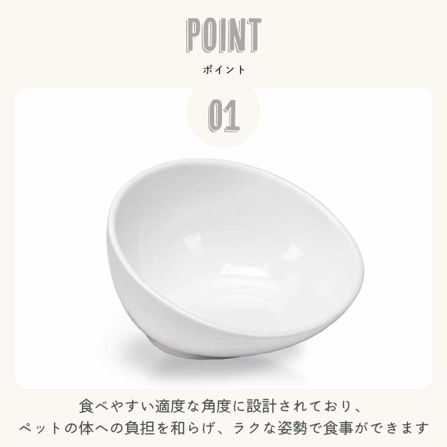 ・食べやすい適度な角度に設計されており、ペットの体への負担を和らげ、ラクな姿勢で食事ができます。
