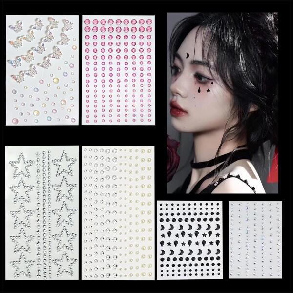 ラインストーン シール 6枚セット フェースステッカー 3D 貼り付け可能 ダイヤモンド デコパーツ
