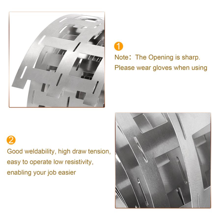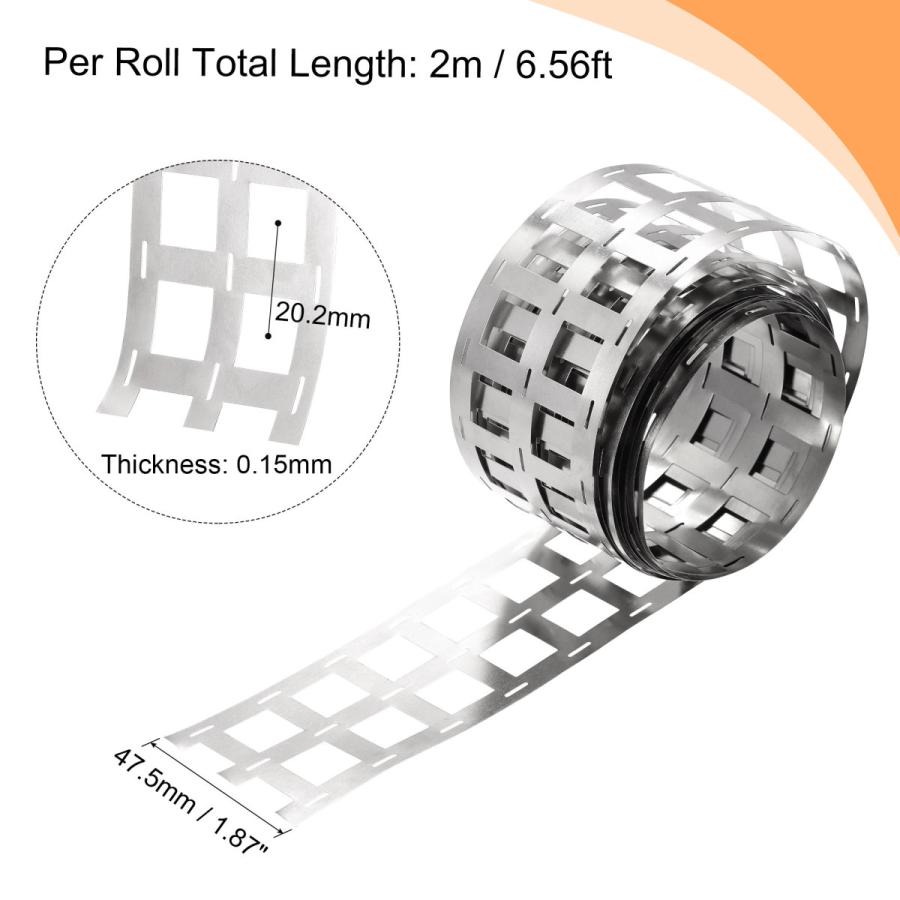 製品名:ニッケルメッキ鋼ストリップ;材質:ニッケルメッキ;ロールあたりの全長:2 M;テープ幅:47.5 mm;厚さ:0.15 mm;スペース距離20.2 mm