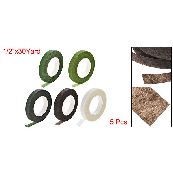 パッケージの内容--- 5ロール12mm幅30ヤードダークグリーン、ライトグリーン、グリーン、ブラウン、ホワイトフローラルテープフラワー接着剤フラワーアレンジメントキット