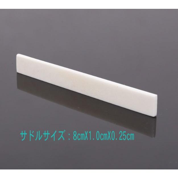 牛骨製の クラッシック用 ギター ナットサドル です。プラスチック製のものから交換すると違いがよくわかります。ナットサイズ:5.2cmX1.0cmX0.6cmサドルサイズ:8.0cmX1.0cmX0.25cm・注意点 : モニターの発色具合によって実際の色と異なる場合がございます。