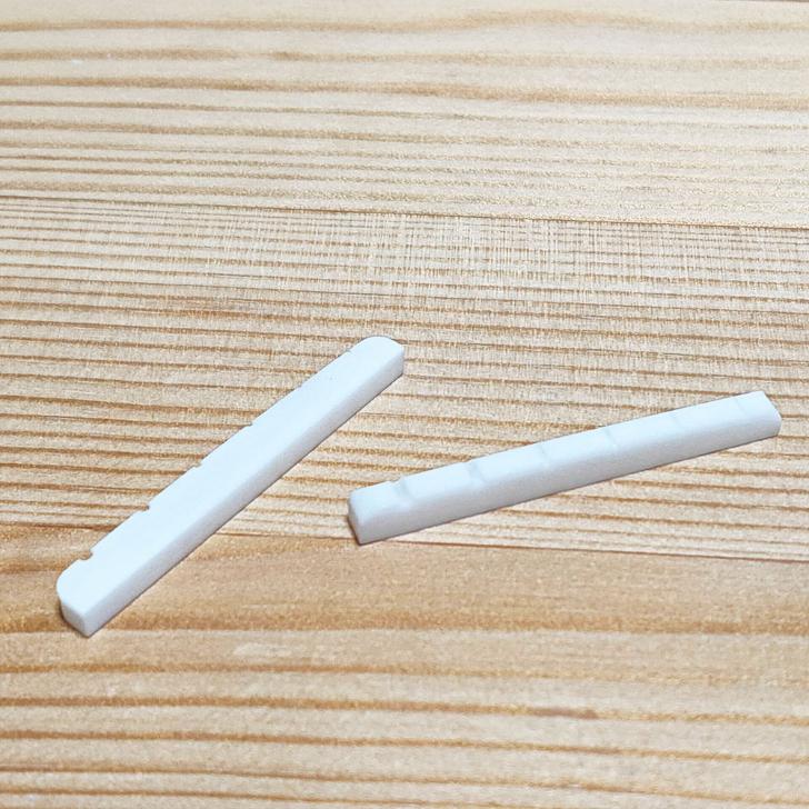 エレキギターフェンダーギタータイプ用ナット 2個セット スロット付(弦溝加工有り)1-6弦溝間隔(E to E ): 34mm長さ:約42mm;幅:約3.5mm;高さ:約4.5mm牛骨ナットは高密度な材質で加工がしやすく、少し油分があるので弦の動きがスムースになります。 音質的には立ち上がりがハッキリした感じでトーンがよりクリアになります。・注意点 : モニターの発色具合によって実際の色と異なる場合がございます。