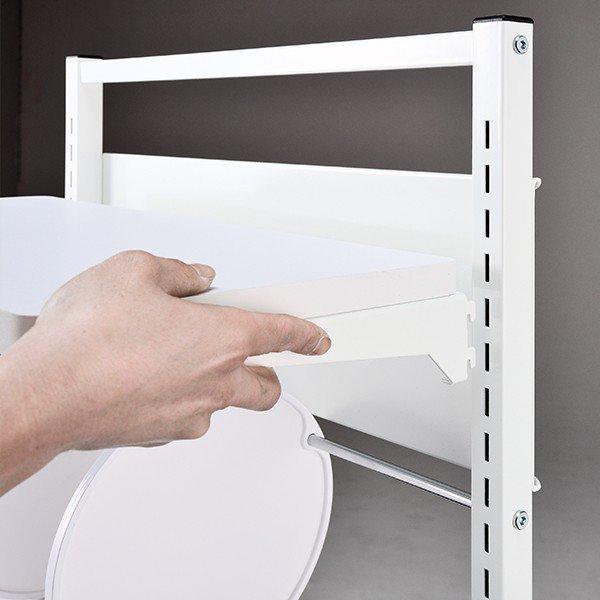 ・品番:YS-52・サイズ:W57.6cm×D30.8cm×H63.9cm・重量:7.1kg・耐荷重:等分布10kg/段・材質:スチール = パウダー塗装、パーティクルボード = 化粧紙貼り・メーカー:林製作所フレームの差し込み穴を変えるだけで簡単に棚の高さを変更することができます。ボード面にはマグネットの使用も可能です。棚板を1枚にしてモニター台としてもご使用頂けます。・備考 :机や小物は商品に含まれておりません・配送について:北海道・沖縄・離島は別途送料がかかります。