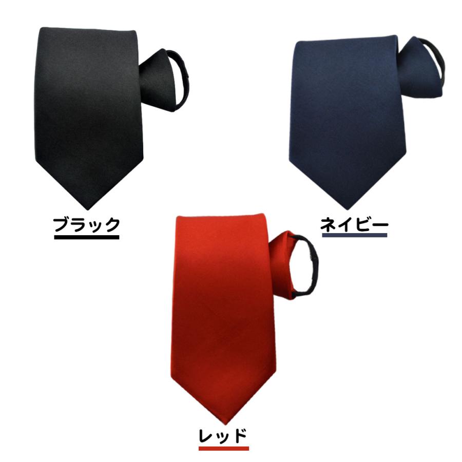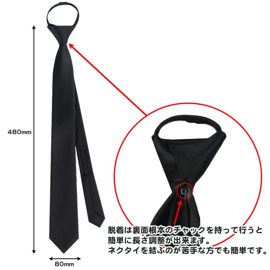 ・素材構成: ポリエステル・結ぶ必要のない、簡単ワンタッチネクタイです。・首にネクタイを掛け、輪っかを締めるだけ!・ネクタイ裏のジッパーで締める緩めるが簡単にできます。・長さ:輪っかより下が約45センチ・カラー:ブラック、ネイビー、レッド