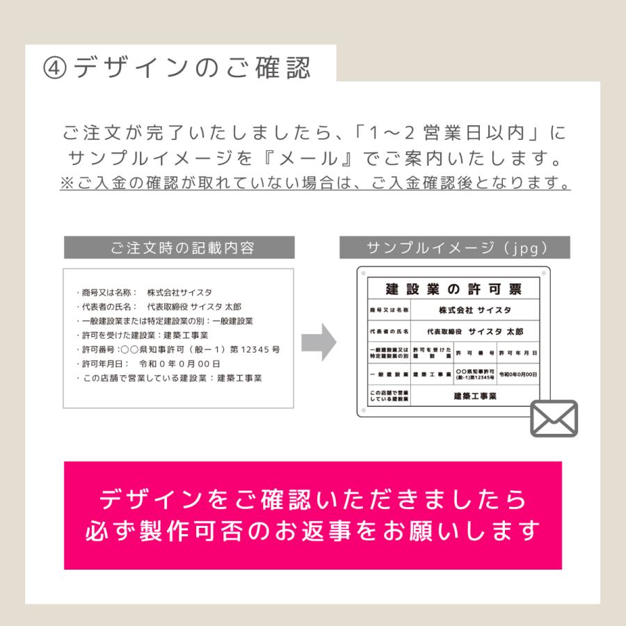 建設業 建設会社 電気工事業 不動産 建築業 解体工事 測量業者 産業廃棄物 マンション管理 賃貸管理 住宅管理 地質調査 派遣事業 浄化槽工事 許可票 業者票 登録票 許可証 建築士 建築事務所 看板 店舗 営業所 標識 掲示 金看板 銀看板 透明看板 事務所用 法定看板 建設事務所 設計事務所 宅建業 不動産会社 おしゃれ シンプル かっこいい アクリル製