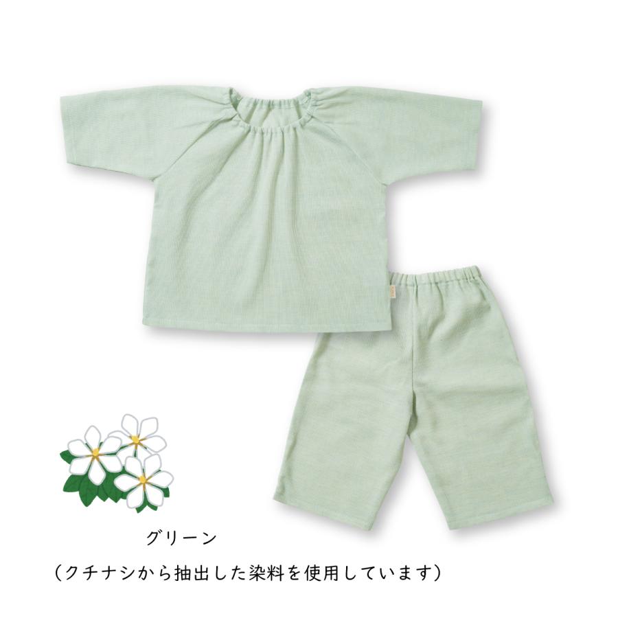 股上が深めでお腹が出にくく安心!オーガニックコットンを植物由来の成分で染色した、ナチュラルで優しい風合いのパジャマです。さらっとした肌触りで夏場におすすめです。サイズ80cmオーガニックコットン100%(クレープ)洗濯可日本製製造:岩下株式会社