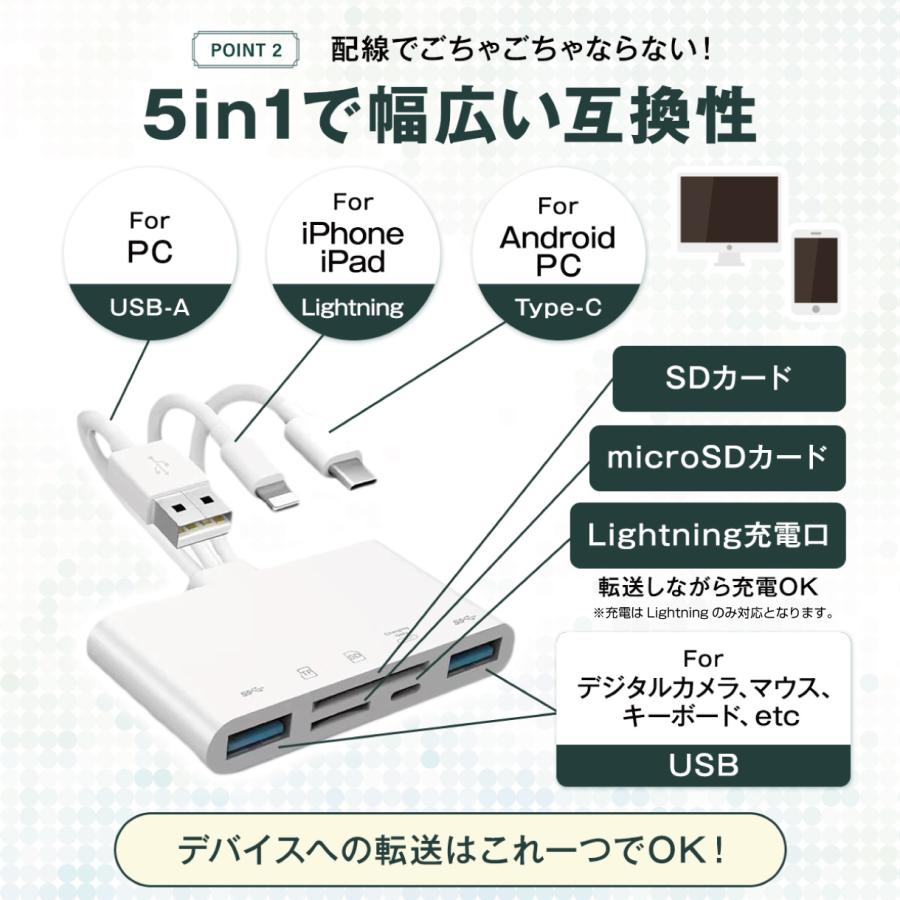 sdカードリーダー iphone アイフォン type-c タイプc usb lightning ライトニング sdカード マイクロsd microsd usbメモリ マルチ 写真 データ 保存 バックアップ 1tb スマホ android 5in1
