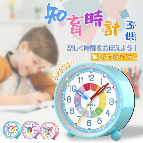 【カラー文字盤デザイン 知育目覚まし時計】カスタマイズの子供 知育 目覚まし時計には、カラー文字盤を採用し、豊富な色(色分けしたの時針・分針・秒針)が子供に時間を識別しやすくし、文字盤のカラー時間帯にひらがなをカスタマイズし、子供の時計学習をより円滑にすることができます。カラフルで子供の興味を誘います。