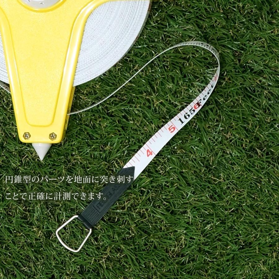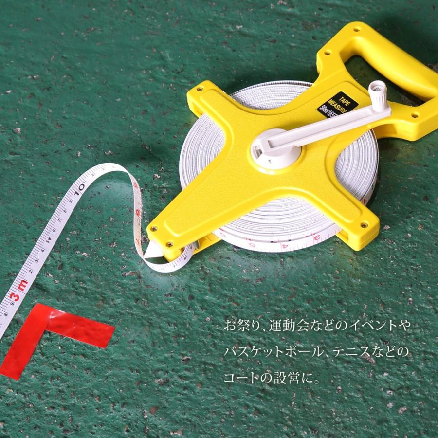 ■50m テープメジャー・お祭り、運動会などのイベントやバスケットボール、テニスなどのコートの設営に。・表面はメートル表記、裏面はフィート表記でさまざまな場面で活躍します。◆製品仕様メジャー全長: 50m (165ft)メジャー幅:13mm本体サイズ:約30×21.5cm重量:約620g素材:ガラス繊維※仕様および外観は、改良のため予告なく変更されることがあります。あらかじめご了承ください。