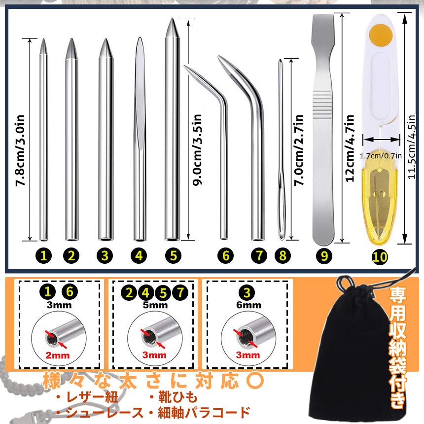 「扱いやすい」多種セットのパラコード用ニードルです。